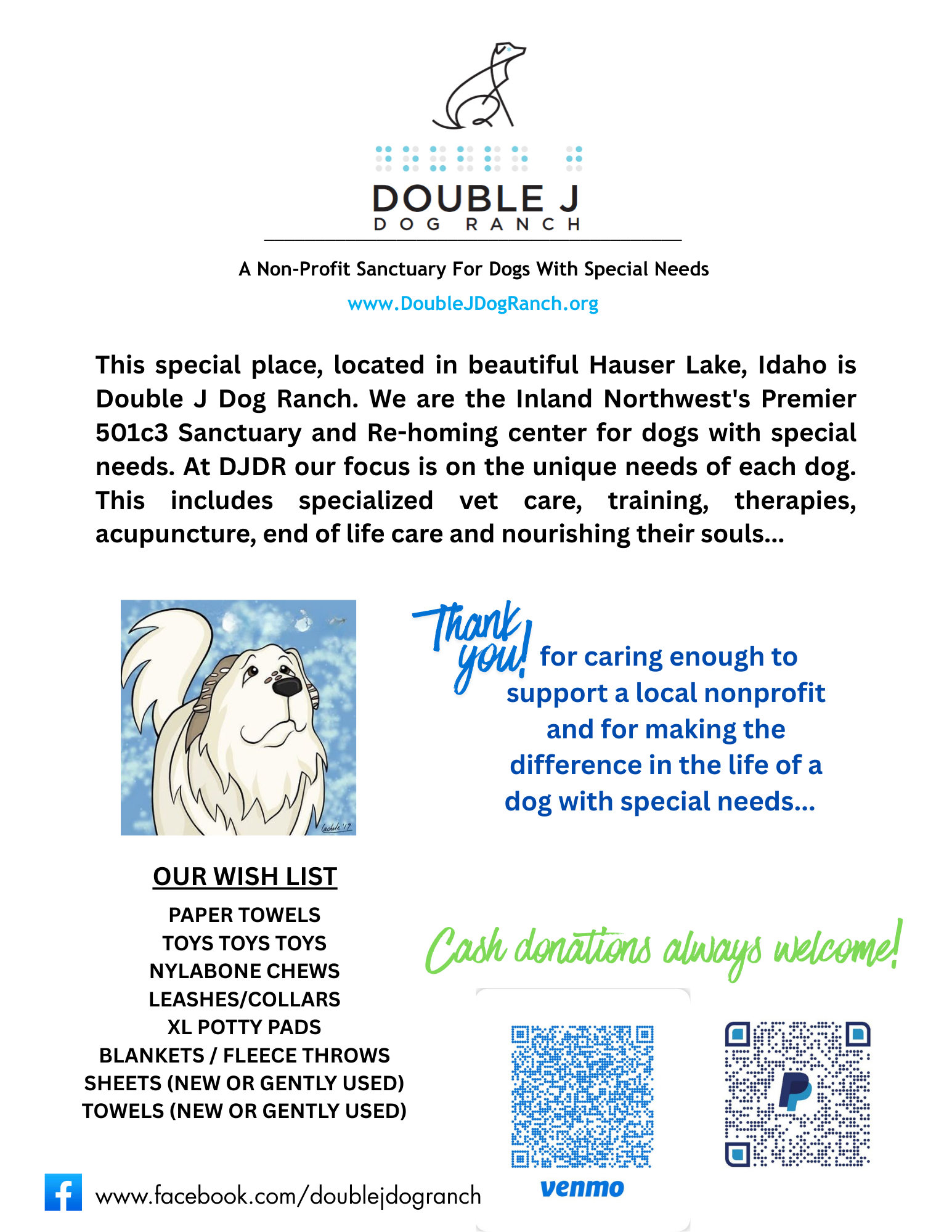 Double J Dog Ranch, Inc. is solely a volunteer based 501c3 non-profit organization. What does that mean to you? With no paid staff, you have our guarantee.....